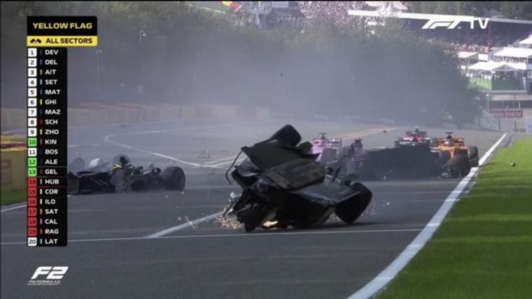 El francés Anthoine Hubert y el ecuatoriano Juan Manuel Correa, fueron los pilotos involucrados en el choque a la salida de la subida a “Eau Rouge”, una de las curvas más emblemáticas y difíciles de sortear en el trazado belga, donde este domingo también se correrá el Gran Premio de Fórmula 1.