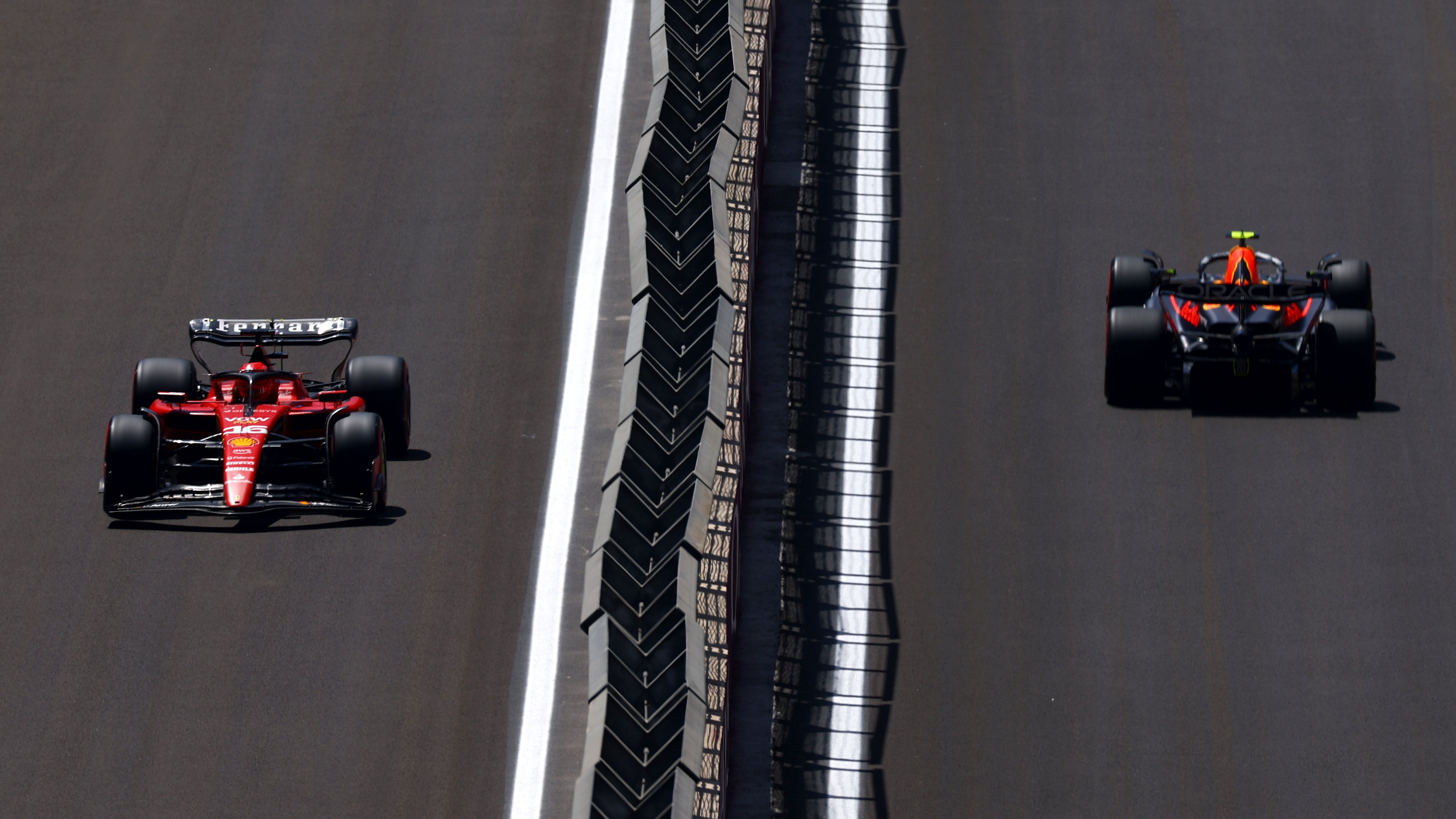 En una dramática definición de la clasificación para el Sprint, Leclerc se golpeó con las barreras, pero ya había establecido el tiempo de referencia de 1m41.697s para tomar otra vez la pole, como ya hizo ayer con la del Gran Premio del domingo. Pérez mejoró, pero solo pudo lograr el segundo lugar en el ''Shootout'', mientras que Verstappen luchó con el ''grip'' y quedó en la tercera posición en el Sprint.