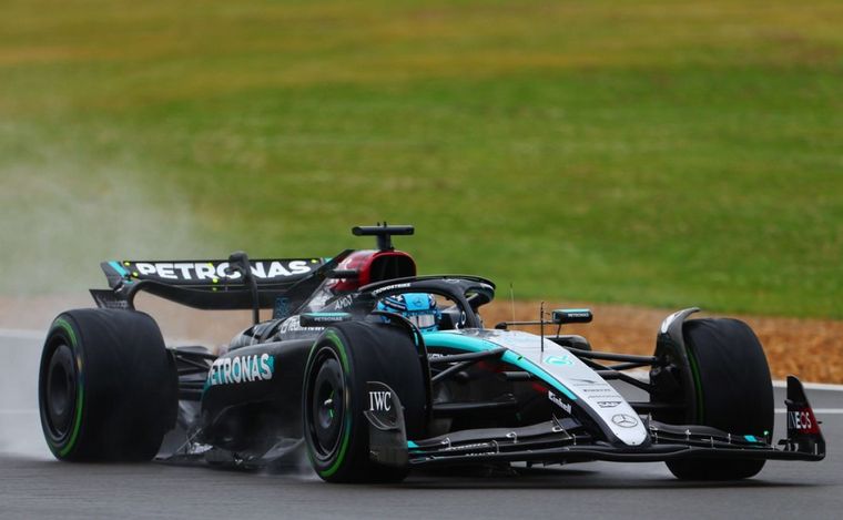 Los británicos George Russell y Lewis Hamilton pusieron un doblete para Mercedes durante la FP3, tercera y última sesión de entrenamientos sobre el asfalto mojado del circuito de Silverstone (5.891 mts) en el Gran Premio de Gran Bretaña de Fórmula 1, postergando al rival de McLaren, también ingles y líder del viernes, Lando Norris.