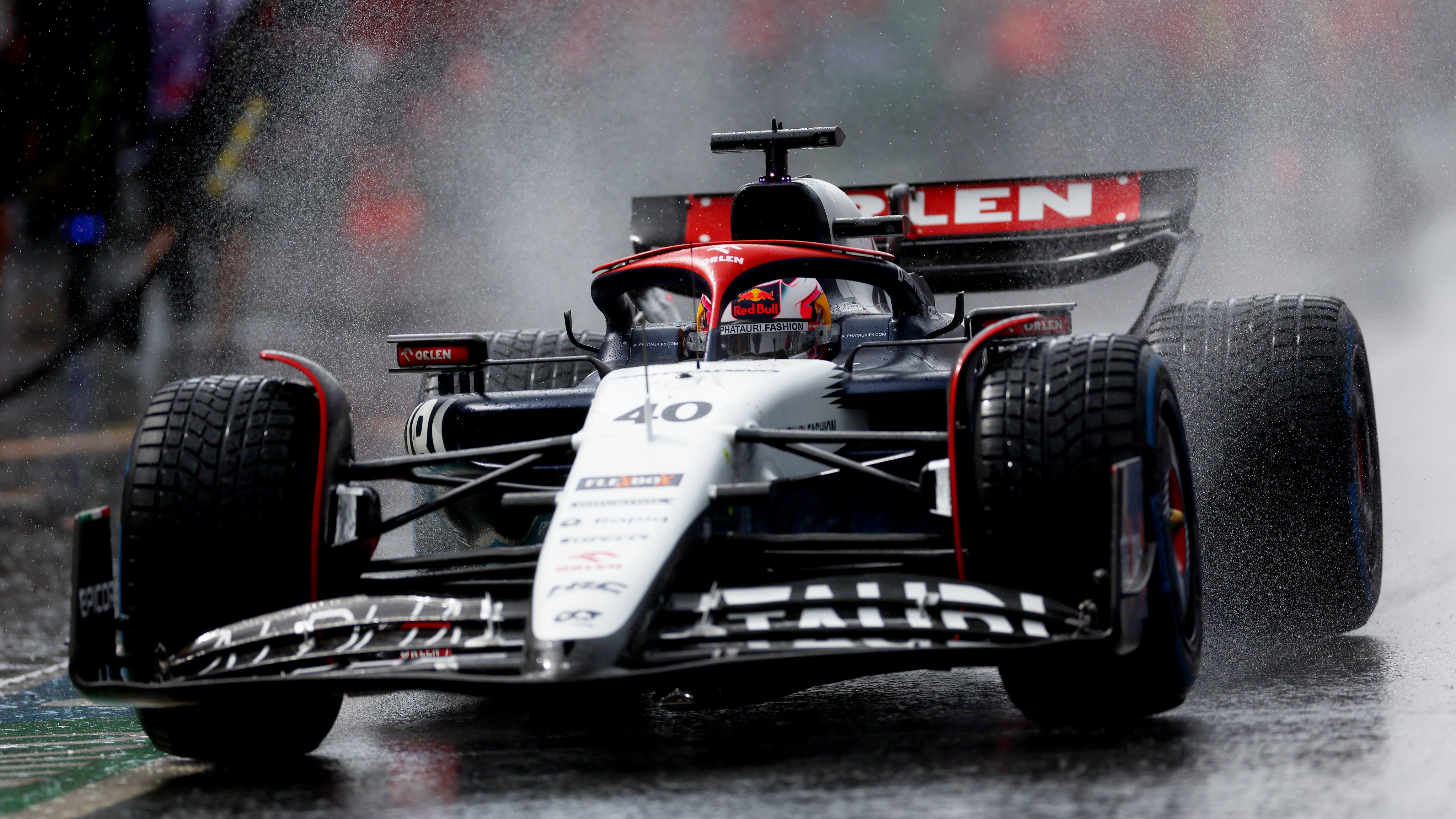 Liam Lawson, que reemplazó a Daniel Ricciardo por la fractura en una mano tras su accidente en la FP2, hizo girar su AlphaTauri contra la barrera en la curva 14 y, a pesar del daño en su alerón delantero, pudo continuar hasta boxes.