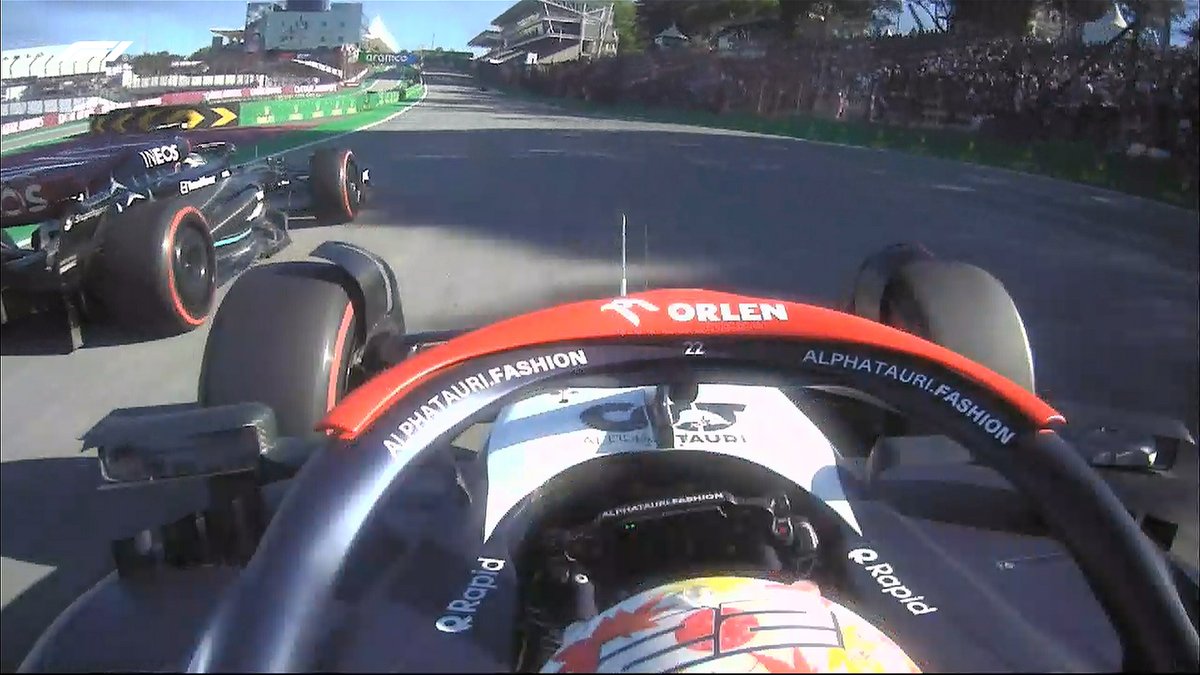 Luego, Norris fue víctima de Russell cuando este último se tiró por dentro del McLaren en la curva 10. Más atrás, la pareja AlphaTauri de Yuki Tsunoda y Daniel Ricciardo perdía posiciones ante el dúo de Ferrari, Leclerc y Sainz, mientras que Oscar Piastri tuvo una excursión fuera de la pista.