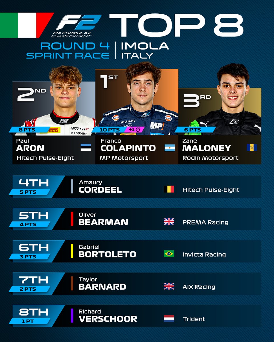 Franco Colapinto dio otra vez la nota y consiguió la victoria de la carrera Sprint de la FIA Fórmula 2, que disputa su Ronda 4 en el Autódromo 'Enzo y Dino Ferrari' de Imola, Italia.