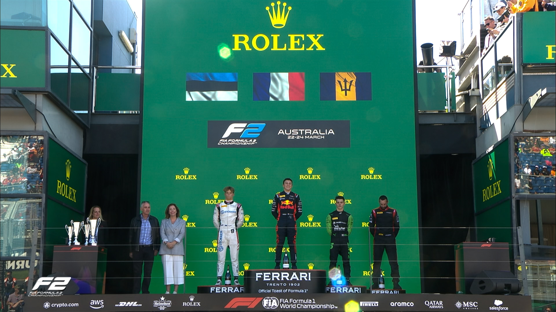 Tras las dos carreras de la Ronda de Australia, el campeonato de Fórmula 2 tiene este orden: Maloney 62, Aron 47, Hauger 41, Hadjar 34, Maini 33. Colapinto es 13° con 13 puntos.