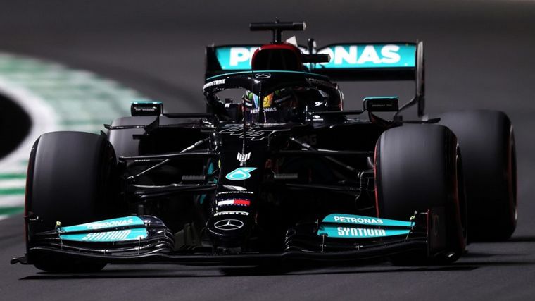 Los pilotos de Mercedes coparon los dos primeros puestos en la práctica nocturna en Jeddah, escoltados por Gasly. Un incómodo Verstappen fue 4°. La sesión terminó con bandera roja a 5' del final.