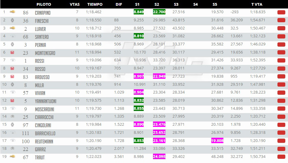 Agustín Canapino con el Cruze oficial #86 fue contundente a la hora de clasificar, estableciendo 1’18”462/1000 para llevarse la pole y asegurarse el mejor lugar de partida para este domingo a las 12:00, cuando los pronósticos del clima dan abundante lluvia para esa hora.