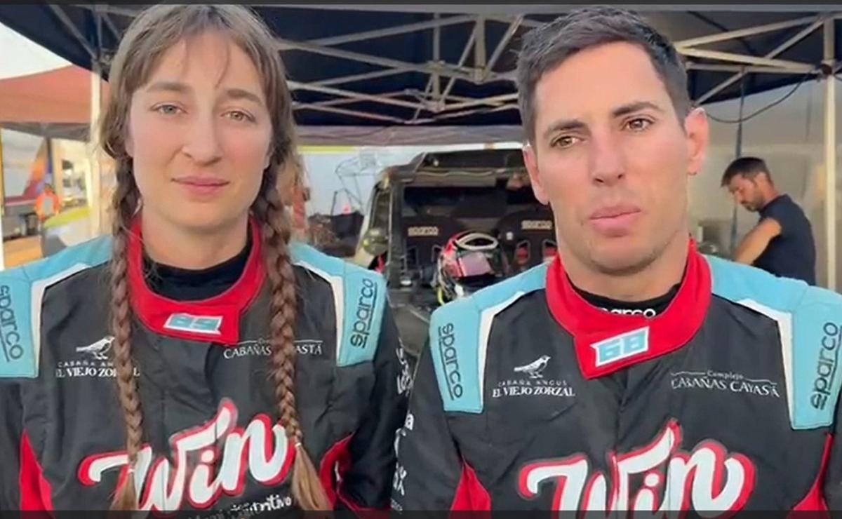 Vale: "Bueno, mañana largamos la segunda etapa, los suelos duros también, esperemos poder acomodar el auto, sentirnos bien y bueno, venimos con los tiempos, veníamos andando y sabíamos los tiempos que teníamos, no nos sentíamos cómodos, pero bueno, para mañana se va a acomodar todo y largar, que quedan todavía cuatro etapas más".
