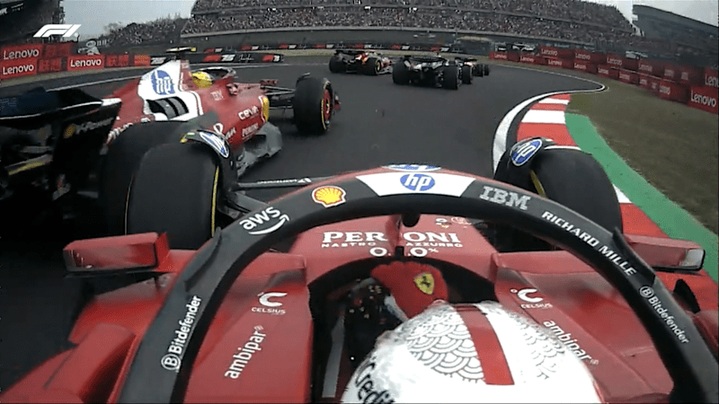 Luego del ilusionante triunfo de Hamilton en el Sprint, con todas las emociones y el significado simbólico con el que el piloto y escuadra justipreciaron el logro, los de 'il Cavallino' parecieron complicarse otra vez en sus 'briefings' técnicos. El domingo, las SF-25 no fueron las mismas. Un curioso incidente lo corroboró. Un roce de primera vuelta entre los dos coches dejó al de Leclerc sin 'end plate' en su 'spoiler DI'.