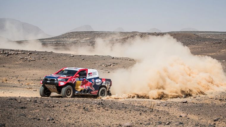 El de Toyota lideró sobre Al Rahji, en autos. El mendocino Halpern fue 5°. En motos, el español lideró un 1-2-3 de Honda, con Brabec y Quintanilla. L. Benavides 8°, Caimi 9° y K. Benavides 11°.