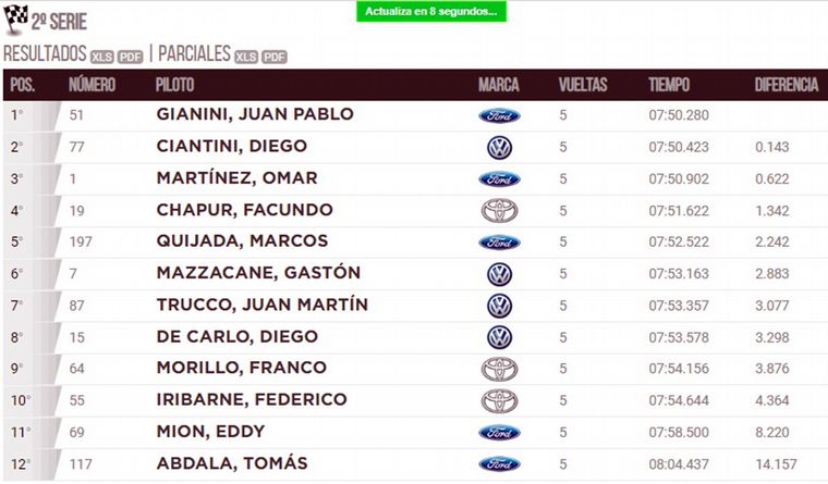 En esta batería, el campeón del TC, José Manuel Urcera (Hilux) arribó octavo, mientras que el cordobés Rodrigo Lugon (Hilux) llegó 10°.
