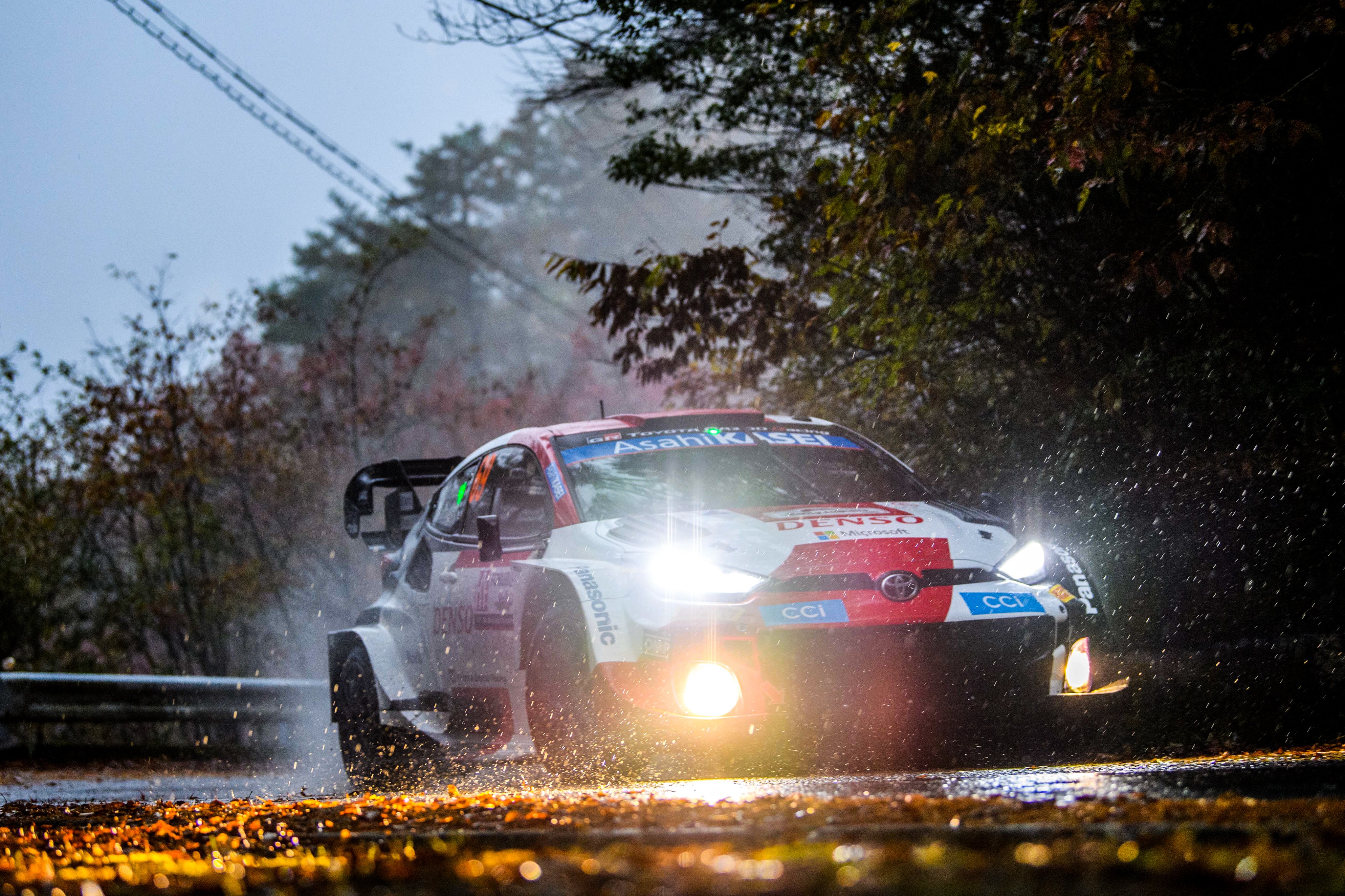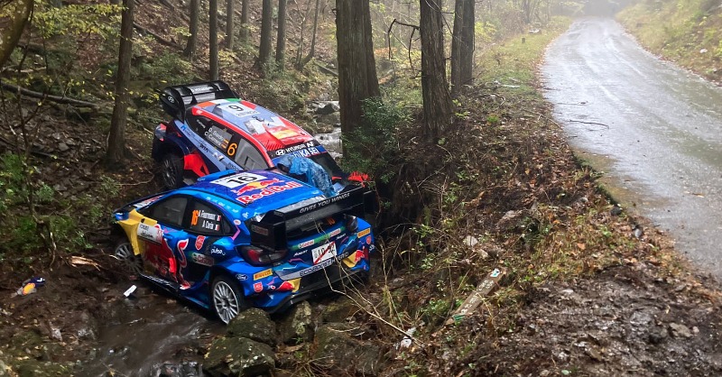 Toyota podría haber copado las cuatro primeras posiciones de no ser por un error de Katsuta en la misma curva que sorprendió a Sordo y Fourmaux. Su coche rozó un árbol y sufrió daños en el radiador, pero la estrella local pudo volver a la asistencia tras completar el tramo en modo EV y realizar las reparaciones.