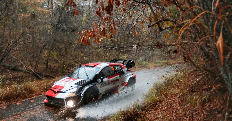 Lluvias torrenciales, niebla espesa y carreteras cubiertas de hojas mojadas fueron sólo algunos de los retos a los que se enfrentaron las tripulaciones en el primer día completo de acción en el Rally de Japón, la prueba final de la temporada del Campeonato Mundial de Rally 2023. La supervivencia era el objetivo del juego y, mientras varios de sus rivales flaqueaban, Elfyn Evans de Toyota apenas salió con una rueda en mal estado y lidera la competencia por cerca de dos minutos.
