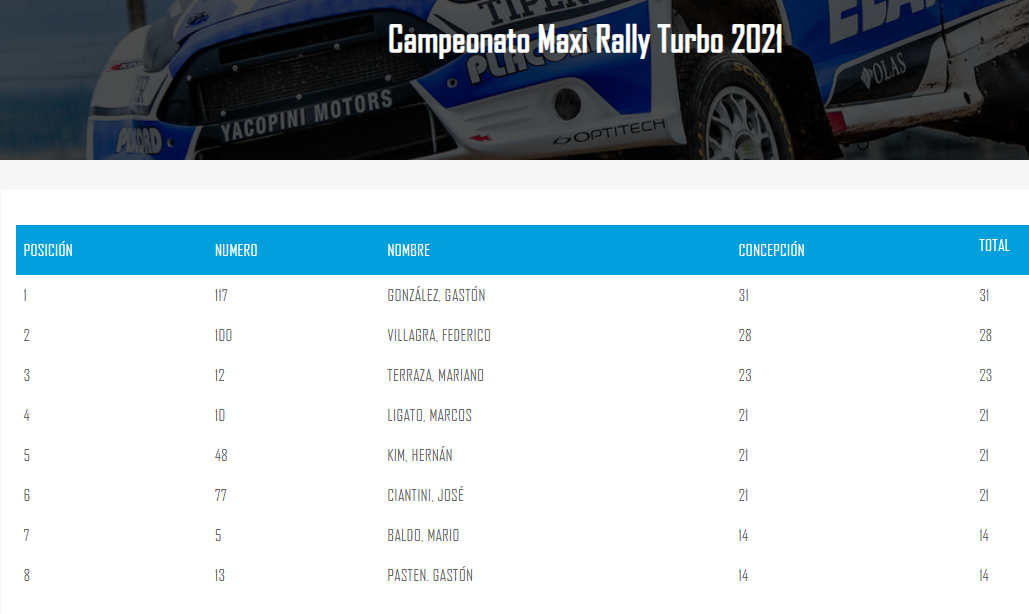 Campeonatos/Posiciones-Maxi Rally Turbo