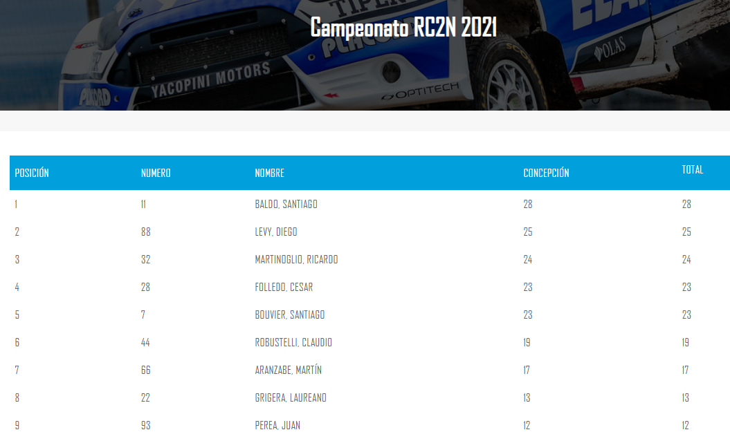Campeonatos/Posiciones-Maxi Rally RC2N