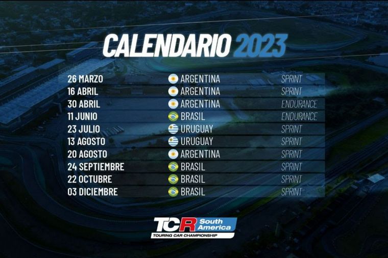 Al igual que los años anteriores, Uruguay seguirá en el calendario, con dos fechas como en 2022. También seguirán en el calendario dos competencias Endurance, una en Argentina y otra en Brasil, que juntas formarán una Copa, con premios independientes al campeonato general. Las fechas sprint de TCR South America seguirán en el probado formato de las dos temporadas inaugurales, con dos carreras por fin de semana.