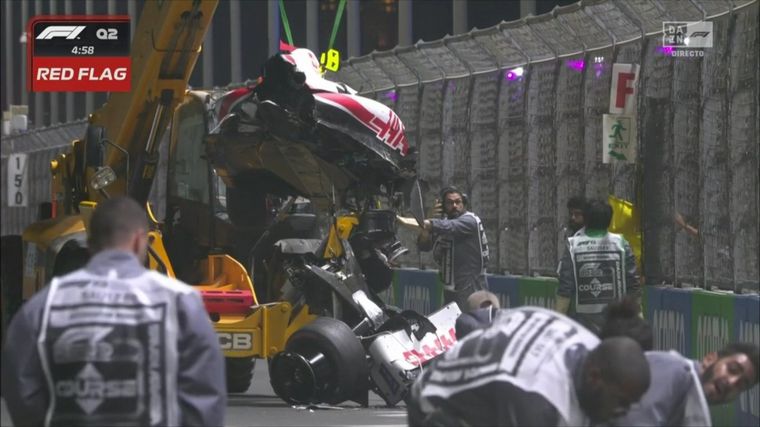 A cinco minutos del final de la Q2 en el Gran Premio de Arabia Saudita que se disputa en el 'Jeddah Corniche', el joven piloto alemán de Haas Team F1, Mick Schumacher, perdió el control de su VF-22 en una rápida 'ese' .secuencia de las curvas 9, 10 y 11-, tocó un borde a la derecha y salió despedida contra el muro de la izquierda, donde impactó a más de 230 kilómetros por hora.