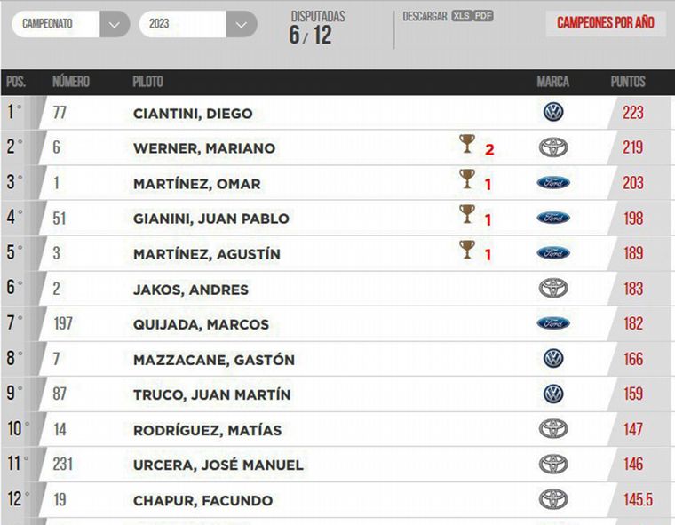 TC PICK UP/Campeonato (6 de 12 fechas):
