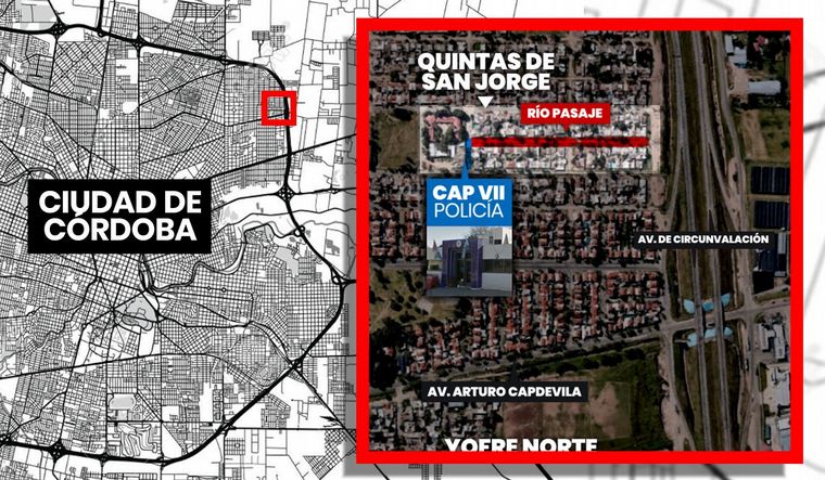 Para ingresar en la "cuadra narco" de Quintas de San Jorge, en el extremo noreste de la ciudad de Córdoba, hay que pasar por el frente de una sede policial, base del Comando de Acción Preventiva del Distrito 7 (CAP 7), en la esquina de Melián y Arriola. De allí, a sólo 50 metros, se accede a estos 200 metros que hace años forman parte de una insólita referencia en la geografía capitalina.