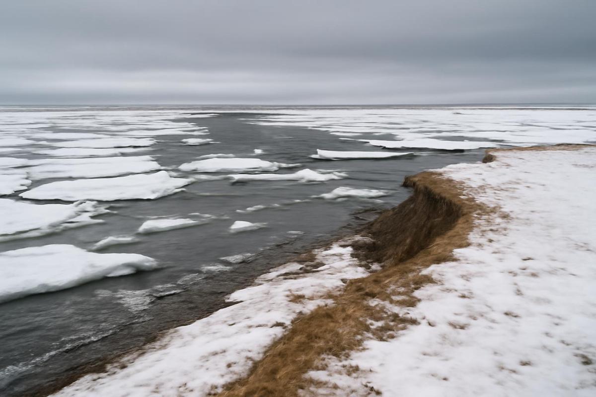 El hielo marino estable en la costa de Alaska desaparece rápidamente, acortando la temporada de hielo en semanas y meses. Este cambio impacta la seguridad en los viajes y las condiciones de caza de las comunidades locales.