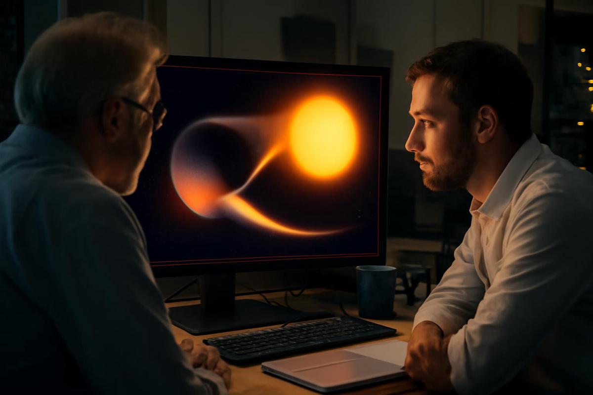Lo más sorprendente es que el helio no forma una sola corriente. En cambio, se divide en dos colas distintas. Una se arrastra detrás del planeta, empujada por la radiación estelar y los vientos. La otra se curva hacia adelante, probablemente atraída por la gravedad de la estrella. Juntas, estas corrientes de gas se extienden a una distancia mayor de 100 veces el diámetro del planeta, o más de tres veces la distancia entre el planeta y su estrella.