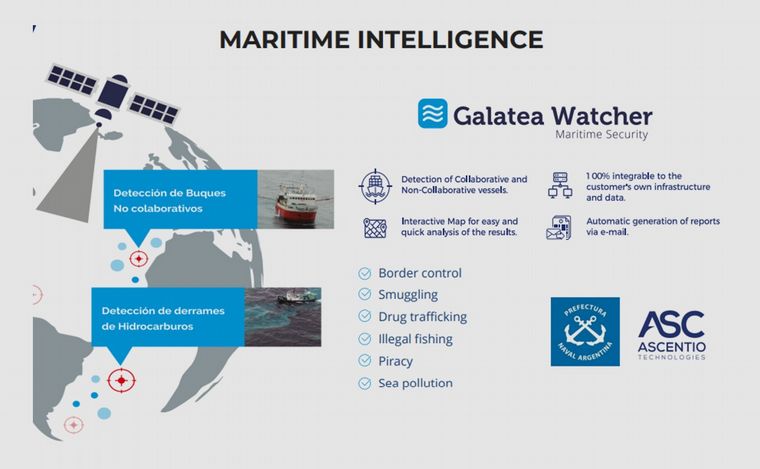 Tras ganar una licitación internacional crearon un sistema (ASC Galatea Watcher) que procesa imágenes satelitales -con radares de apertura sintética - y cruza datos el geoposicionamiento de embarcaciones y les permite detectar los buques que están operando en la plataforma submarina argentina.