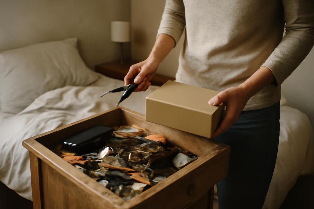 Para abordar este problema, recurrí a diferentes métodos de organización, como la regla de los 30 segundos y el método de desorden de 10-10, que son algunos de mis favoritos. Sin embargo, recientemente decidí probar la regla 90/90 mientras organizaba el cajón de mi mesita de noche, y, para mi sorpresa, me ayudó a avanzar sin sentirme abrumada.