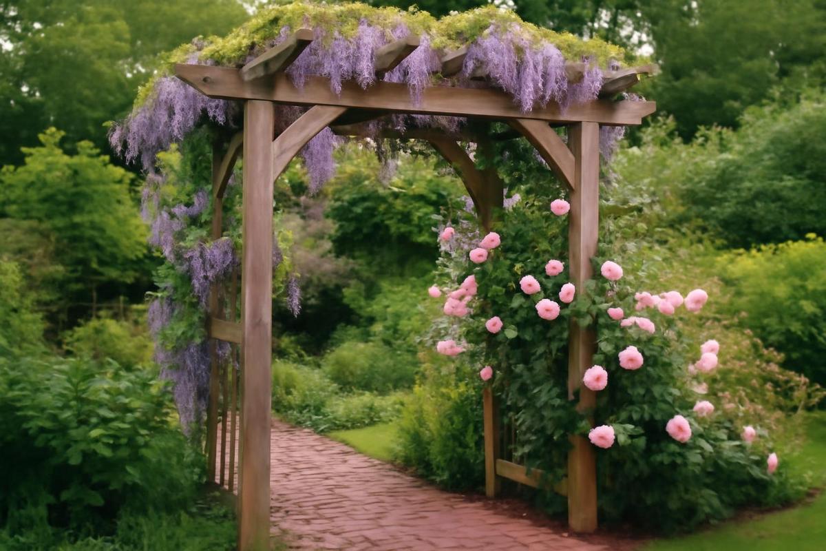 Plantas como la wisteria, clemátide y jazmines son ideales para trepar en los arcos.