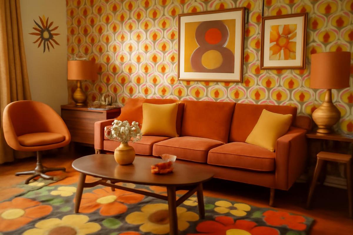 Las tendencias de diseño de los años 60, como muebles llamativos y motivos geométricos, están volviendo a ser populares.