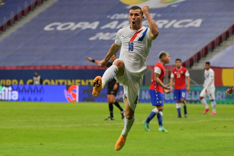 FOTO: Braian Samudio festeja el golazo que abrió el camino al triunfo de Paraguay.