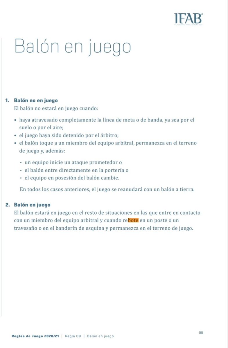 -Si la jugada se detiene dentro del área de penal y se debe reanudar con un bote, la pelota será "lanzada al suelo" para el arquero, sin ninguna disputa.
