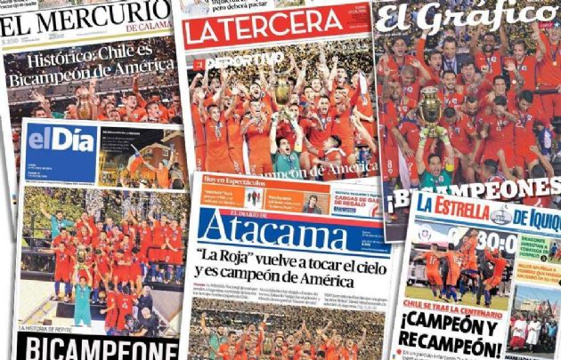 Por su lado, la edición deportiva de La Tercera también siguió por la misma línea y afirmó: "Otra vez campeones: La mejor generación de la historia le regala a Chile su segundo título".