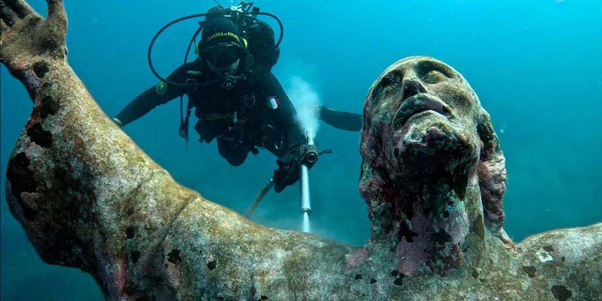 Limpiaron la escultura del Cristo del Abismo a 17 metros bajo el mar en Italia