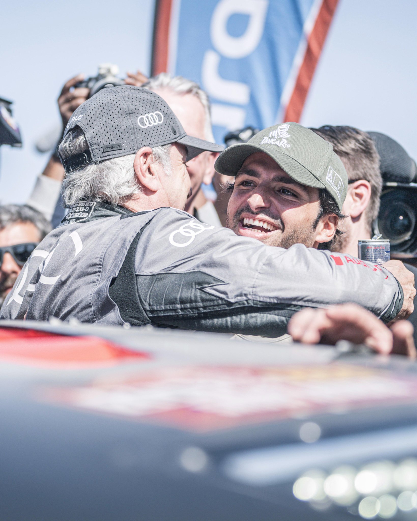 Al 'Matador' le acompañó en la llegada toda su familia, que viajó ayer cuando supo que la victoria estaba al caer y fue muy emocionante atestiguar de tan cerca sus emociones. Carlos Sainz Jr., el piloto de Ferrari en F1, se lo contaba a la Cadena 3 Argentina en la llegada de Yanbu: "Muy feliz de verlo ganar y de poder estar en este momento tan especial de su carrera y de su vida y para nosotros, obviamente, también. Es increíble, a los 61 años, tercer año del proyecto Audi, el último año que parece ser y ganarlo de esta manera, cómo se ha preparado es un orgullo y un privilegio verlo. Es un modelo en mi vida, lo será siempre y tenerle a mi lado en mis carreras y yo poder estar aquí es ideal".