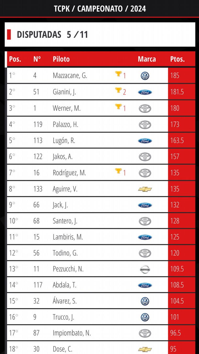 Mazzacane al arribar en tercera posición y completar el podio final, sostiene la punta del campeonato ahora por solo 3,5 puntos sobre Gianini. Buena performance del cordobés Rodrigo Lugón que llegó 7° con su Ford Ranger, para mantenerse entre los cinco mejores del campeonato.