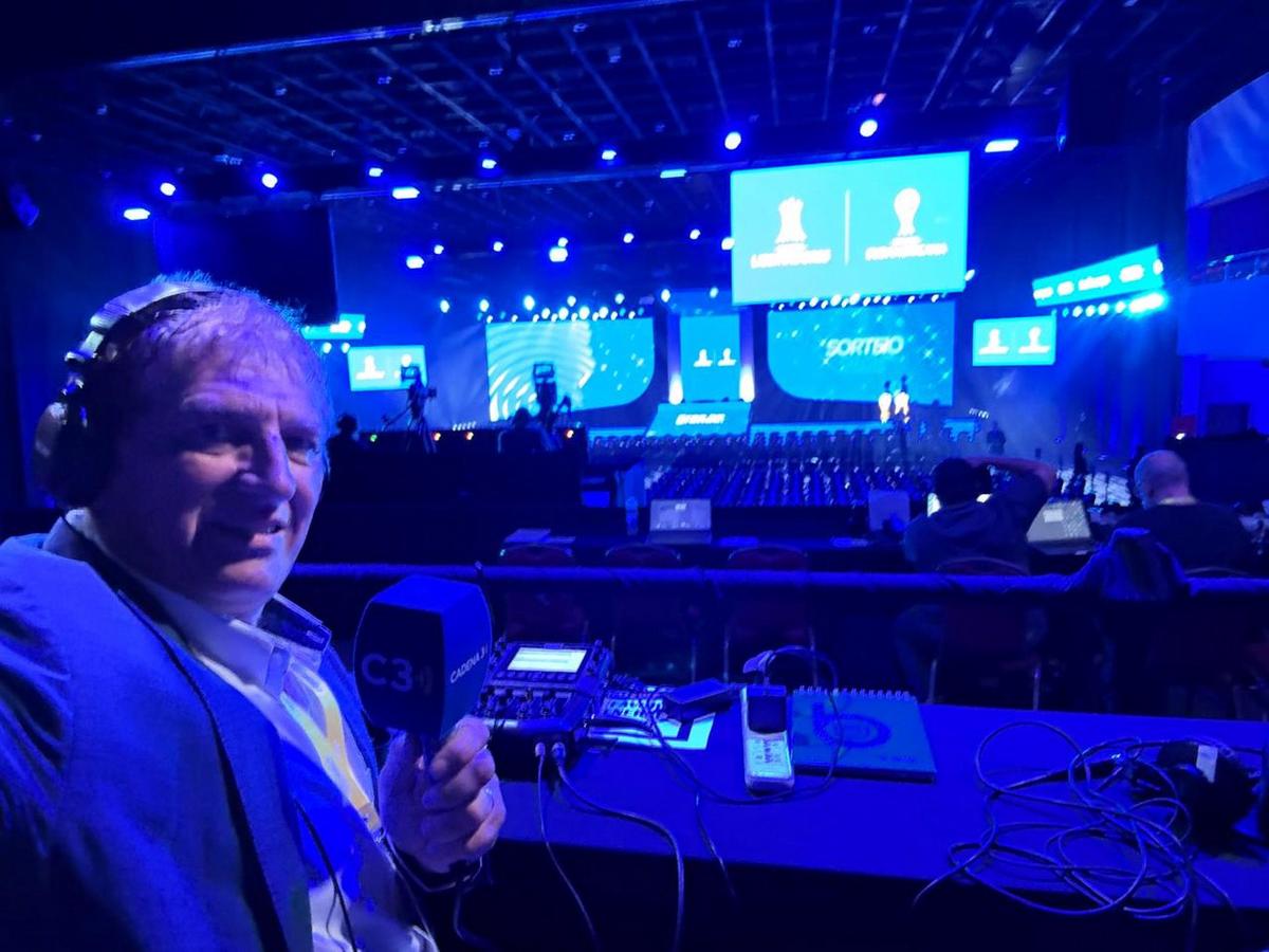 Claudio Giglioni, Marcelo Lamberti y Juan Vallejo, cubren en La Cadena del Gol, el sorteo que definirá el grupo de los equipos argentinos en el torneo continental.