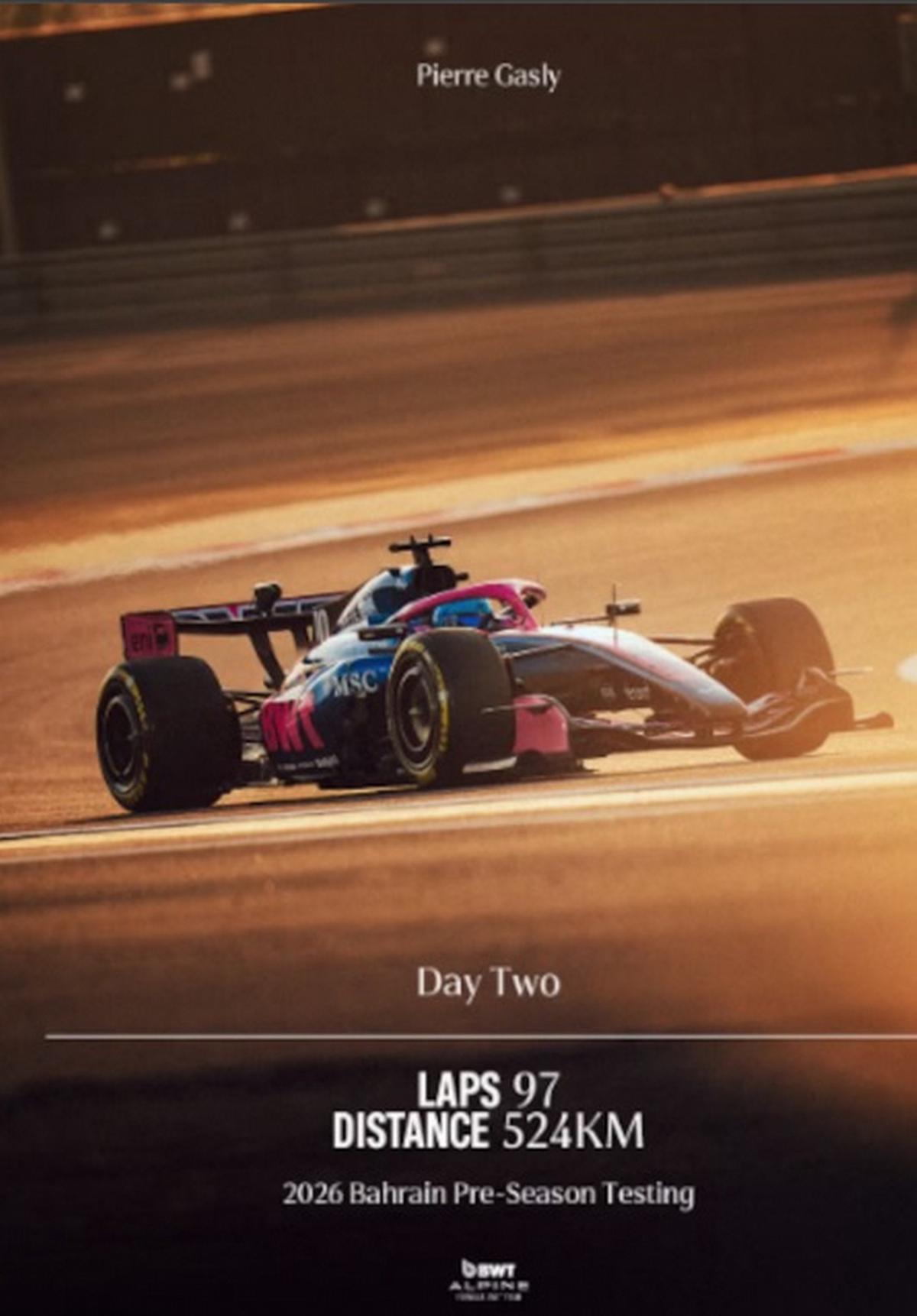 El piloto francés completó un total de 97 vueltas, recorriendo 524 kilómetros en el circuito de Sakhir. “Terminando nuestro segundo día con 97 vueltas, dándonos muchos datos para trabajar esta noche”, publicaron desde la cuenta oficial de Alpine en Instagram, destacando el volumen de información recopilada pese a las dificultades.