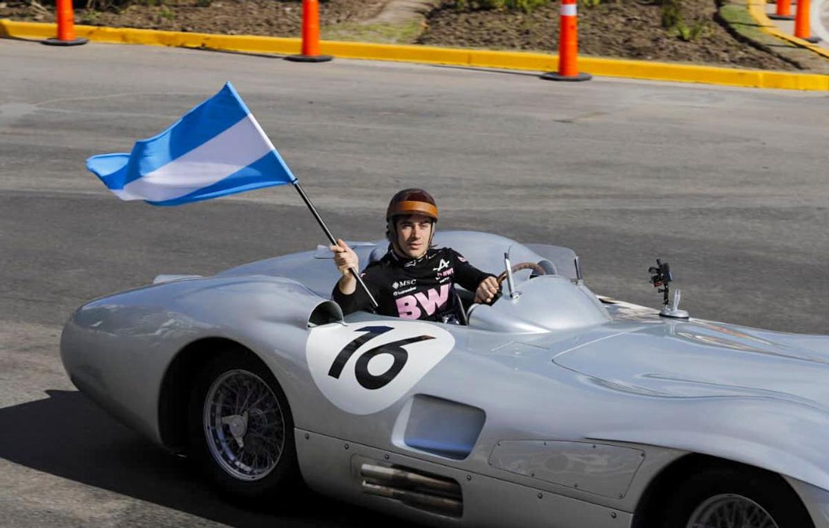 Colapinto revive la historia al conducir el Mercedes de Fangio en una vuelta