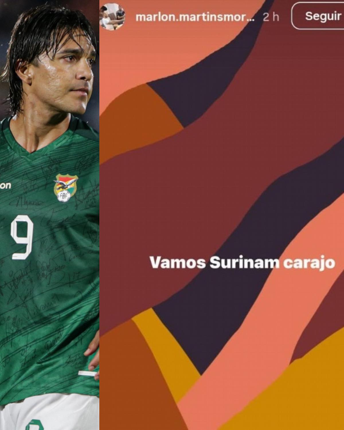 Marlon Moreno Martins, hermano del goleador boliviano, expresó su apoyo a Surinam en redes sociales tras no ser convocado para el Repechaje del Mundial 2026, lo que desató una fuerte polémica.