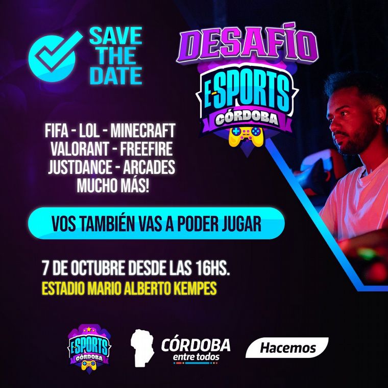 A partir de las 16 horas jóvenes, familias y toda la comunidad gamer podrán disfrutar del Desafío eSports Córdoba que incluirá torneos de FIFA, League of Legends, Valorant, Minecraft, Free Fire y el Cuadrangular de Fútbol Electrónico entre Talleres, Belgrano, Instituto y Racing de Córdoba con casters que relatarán todas las partidas.