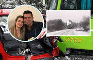 Las imágenes, que fueron compartidas a través de Twitter, muestran el momento en que el vehículo pierde el control e impacta contra un colectivo en una curva, mientras se observa la carpeta asfáltica cubierta de hielo y nieve.