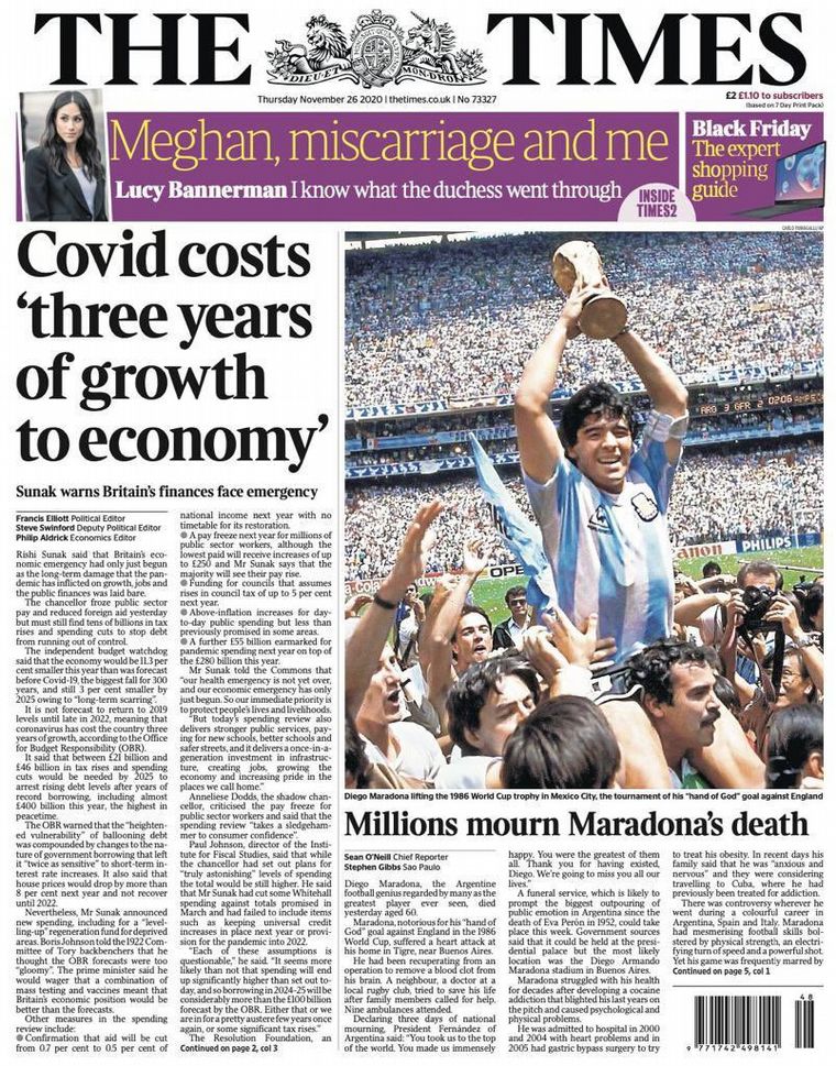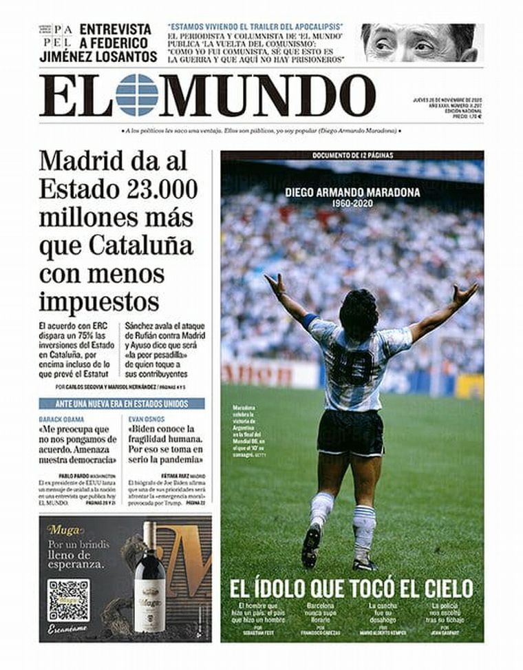 Los medios gráficos más importantes alrededor del globo cubrieron sus portadas con la noticia del fallecimiento del ídolo argentino. Mirá.