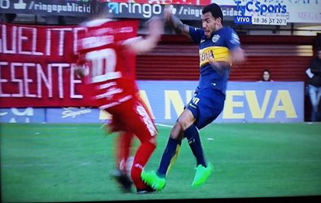 Tevez lesionó a Ham cuando transcurrían 32 minutos del segundo tiempo y fue a disputar una pelota dividida con la suela de su pie derecho levantada, lo que produjo un efecto de palanca sobre la pierna del jugador de Argentinos.