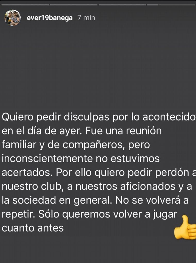 Este domingo fue el propio Banega quien pidió disculpas a través de su Instagram: