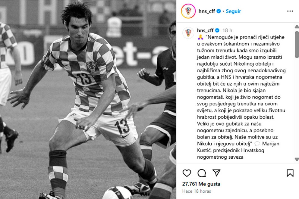 El diario croata Jutarnji list y el portal Sportske Novosti dieron a conocer la noticia, que fue confirmada por el presidente de la Federación Croata de Fútbol (HNS), Marijan Kustic, a través de un emotivo comunicado en redes sociales: “Nikola fue un gran futbolista que vivió el fútbol hasta su último momento y mostró una valentía increíble al superar una terrible enfermedad. Es imposible encontrar palabras de consuelo en este momento tan triste. Nuestras condolencias a su familia”.