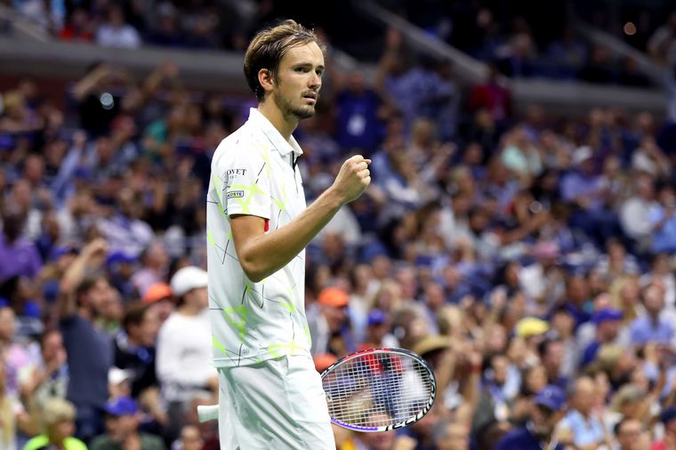 "¡Med-ve-dev! ¡Med-ve-dev!", retumbó en la tribuna tal vez por apoyo al ruso o simplemente para extender las emociones de la final del último Grand Slam del año, pues hasta hace nada, era el villano del torneo por su conducta anterior en la cancha, que incluyó un gesto obsceno al público y maltrato al recoge bolas.