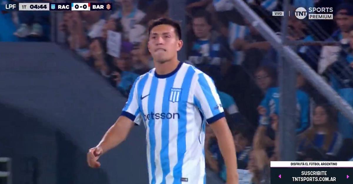 El jugador de Racing recibió una tarjeta roja directa tras una revisión del VAR por un codazo. La expulsión condicionó al equipo en el encuentro del Torneo Apertura.