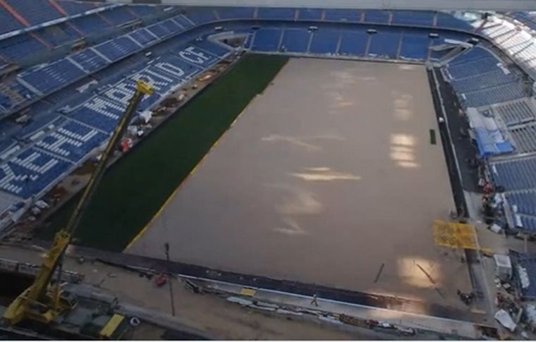 Video: el impactante sistema para remover el campo de juego del Bernabéu