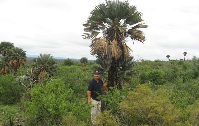 Los Volcanes de Pocho (Poca, Boroa, Véliz, Agua en la Cumbre y La Ciénaga) se elevan con formas cónicas en medio de los palmares de Palma Caranday en la Pampa de Pocho cerca de Taninga.