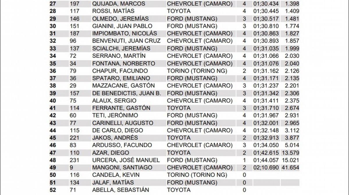 Sin cubrir las expectativas y muy lejos en los tiempos, quedaron: P25 J. Castellano, P28 M. Rossi, P29 Olmedo, P36 Chapur, P39 De Benedictis, P46 Ardusso, P48 Urcera y P49 Mangoni.