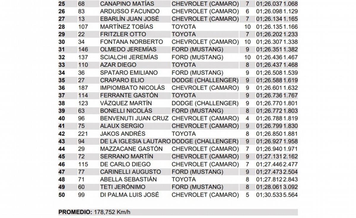 Algunos minutos más tarde, fueron los Chevrolet del Canning Motorsport los que aparecieron para demostrar que también estarán en la pelea. Canapino, Santiago Mangoni y Valentín Aguirre completaban los mejores cinco puestos, detrás de los uruguayos.