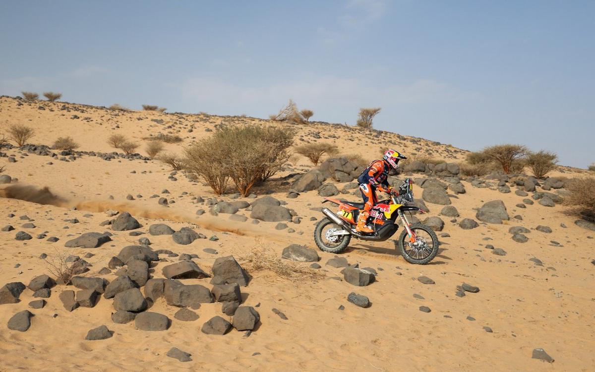El salteño (4°) de KTM se sorprendió con la jugada estratégica del estadounidense (6°) de Honda con el que define, 'mano a mano' la Odisea. A dos etapas del final, está primero por 56s sobre Brabec.